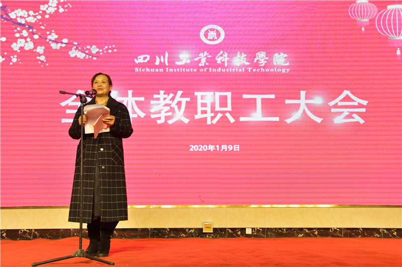 1月9日上午,学校全体教职工大会在校外实训基地桂湘园隆重举行。全体校领导出席会议,全体教职员工参加会议。会议由学校党委副书记倪霞主持。