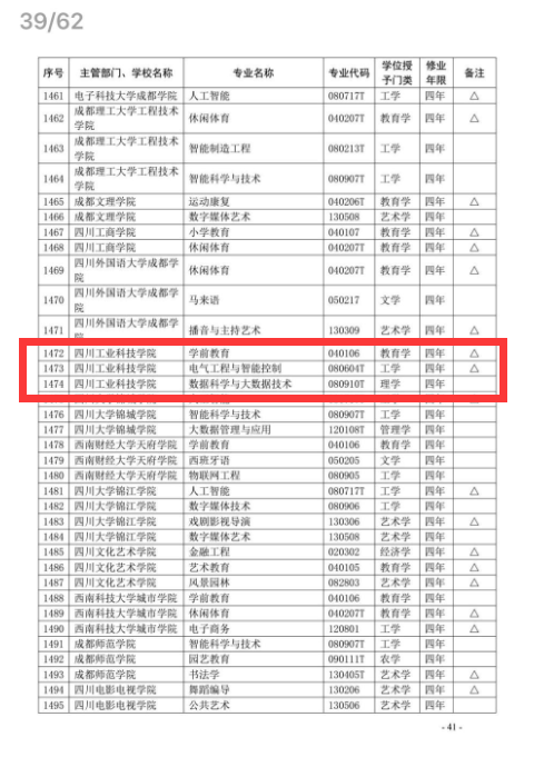 日前,从中华人民共和国教育部官方网站获悉,四川工业科技学院申报增设的“学前教育”,“电气工程与智能控制”,“数据科学与大数据技术”3个本科专业,成功通过教育部批准。