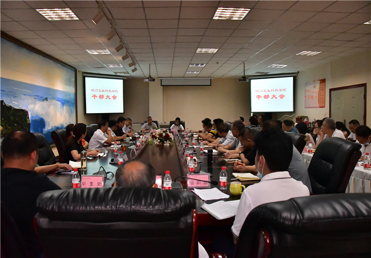 6月23日下午,学校在图书馆D-01会议室召开全校干部大会,安排部署期末各项工作。全体校领导出席会议,各部门负责人、各二级学院院长和书记(副书记)以及绵竹校区管委会常务副主任参加了会议。