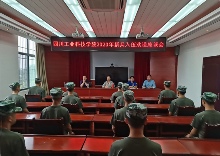 9月15日上午9:00和下午15:00,“牢记母校嘱托 立志强军报国—2020年四川工业科技学院新兵入伍欢送座谈会”分别在罗江校区和绵竹市武装部举行。学校党委副书记倪霞,校长助理、学工部部长杨朋,党委组织部部长邓成奉、绵竹校区管委会常务副主任何忠国、党委武装部副部长季军,相关二级学院党总支书记(副书记)、学工办主任、辅导员代表以及44名2020年入伍学生共计60余人参加了座谈会。座谈会分别由学校安全保卫处处长、武装部常务副部长彭久军和安保处副处长雷全祖主持。