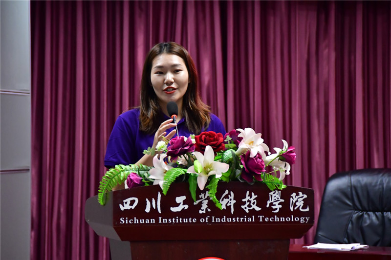 基础教学部杨凤代表新进教师发言。她代表所有新进教师承诺,将秉承明德,博学,笃行的校训,为学校的教育事业添砖加瓦,为人才的培养鞠躬尽瘁。