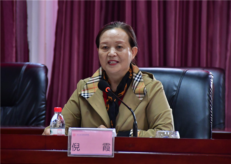 党委副书记、纪委书记倪霞宣读了学校党委《关于表彰“深入学习贯彻党的十九届四中全会精神 推进教育治理体系和治理能力现代会”专题网络培训班优秀学员的通报》,会领导一道为受表彰的学员颁发了荣誉证书。