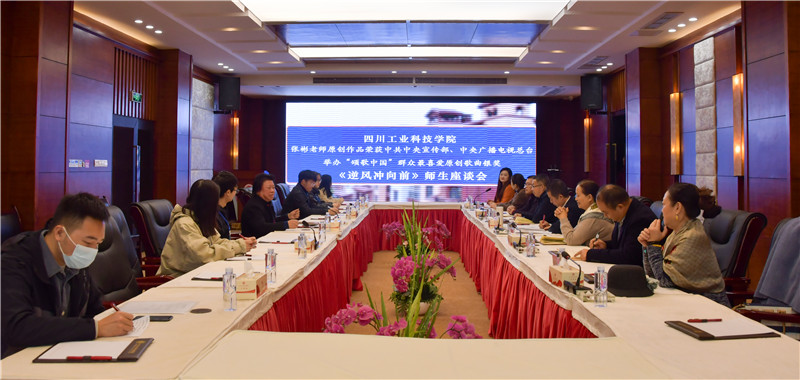 在座谈会上,倪霞、黄斯欣、杨朋、何林贵、孙红英以及学生代表纷纷发言,对张彬老师获奖表示热烈祝贺。大家一致认为,张彬老师的原创作品《逆风冲向前》,以中国人民抗击新冠肺炎疫情为背景,用朴实自然的歌词、起伏流畅的旋律,歌颂了中华儿女心手相牵、众志成城、齐心抗疫的艰苦历程。整首歌曲制作精细,演唱情真意切,真实地表现了紧贴时代的历史责任和担当精神,以及浓浓的爱国情怀,展现了中华民族战胜疫情的坚强决心和意志。作品令人感动,颇受教育。大家纷纷表示,将发扬伟大的抗疫精神,团结一心、众志成城、奋发有为,为学校高质量发展作出自己应有的贡献。