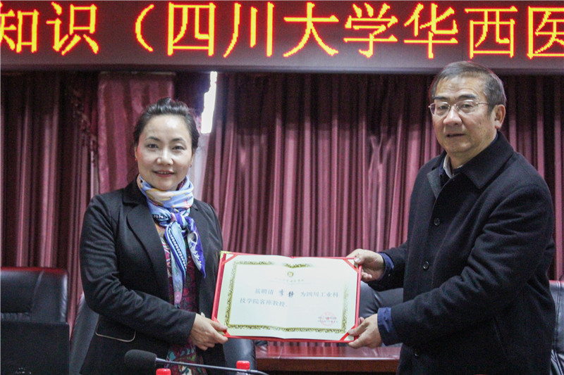 讲座开始前,校长张小南教授颁发了聘任李静教授为四川工业科技学院客座教授聘书。