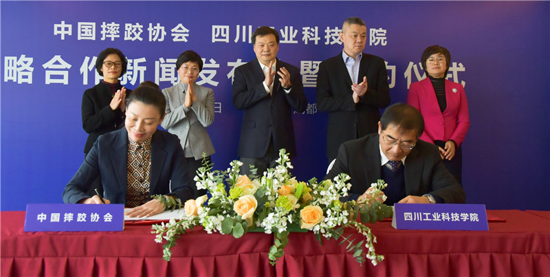 发布会上,中国摔跤协会主席张霞与四川工业科技学院校长张小南代表双方签署了战略合作协议。