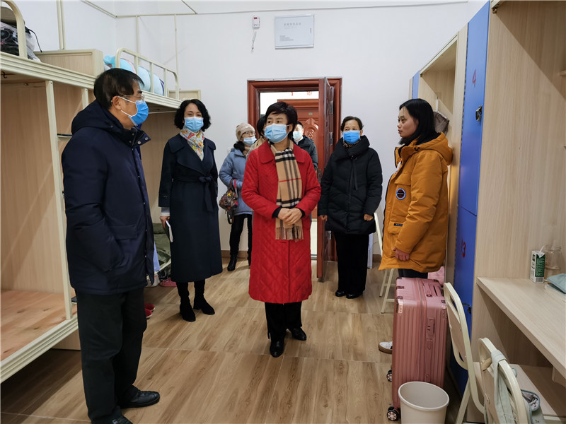 何苹一行查看了学校的留观室、食堂、物资储备室等重点场所的疫情防控情况,详细了解了学校疫情防控的具体举措和落实情况,并在学校108国际会议中心召开了疫情防控专题座谈。