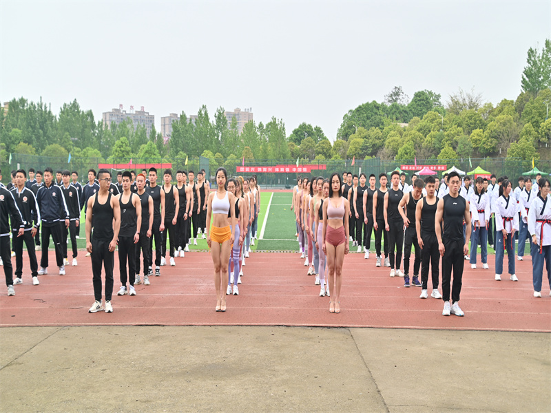 体育学院学子们在主席台前进行了健美、武术、跆拳道等表演,尽显学校体育学子昂扬时代的精神风貌;