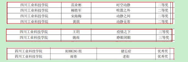 在本次比赛中,四川工业科技学院荣获“优胜学校”。本次比赛我校共8组选手获奖,其中二等奖4组,三等奖2组,优秀奖2组。