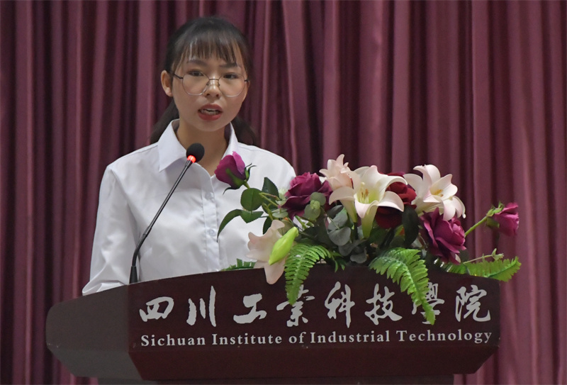 2019级国贸本科班李青俊同学代表全体四川工业科技学院学子,向母校和老师表达了由衷的感恩之情,并为全体教师献上了诚挚的节日祝福。