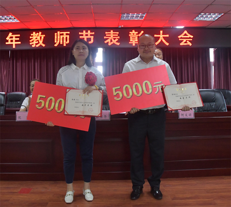 学校党委书记张继华教授发表了热情洋溢的讲话。他指出,“大学者,非大楼之谓也,有大师之谓也”。办好教育、办好学校,教师是关键,一大批优秀教师是关键。今天受到表彰的先进个人,就是学校教育教学、教育管理方面的优秀代表人物,他们为学校改革发展做出了突出贡献,理应受到学校的肯定、尊重和表彰。希望全校广大教师以他们为榜样,励志笃行,为人师表,在教书育人的伟大事业中实现自己崇高的生命价值。他向全体教师提出了三点意见,一是修身立德、为人师表。广大教师既要在“才、学、识”上充实、提高、完善自我,提高教育教学自信力,形成独具特色的教育教学风格。同时要坚定理想信念,加强个人修养,追求高尚情操,塑造洁身自好的道德标杆,历炼敬业奉献的卓越品质,严以律己,宽以待人,学为人师,行为世范。二是爱岗敬业、关爱学生。广大教职工要忠诚党和人民的教育事业,认真贯彻党的教育方针,认真落实立德树人根本任务,树立崇高的职业理想和坚定的职业信念,把全部精力和满腔热忱献给教育教学事业,做“四有好教师”。以真爱、真情、真心、真诚教育影响每位学生,做学生的良师益友,做学生健康成长的引路人。三是勇于创新、奋发进取。广大教职工要以脚踏实地的作风,锐意进取的精神,立足当前、放眼未来,积极探索教育教学规律,创新教育理念,创新教育方式,创新育人手段,努力培养具有创新精神和责任担当的堪当民族复兴大任的德智体美劳全面发展的社会主义建设者和接班人。