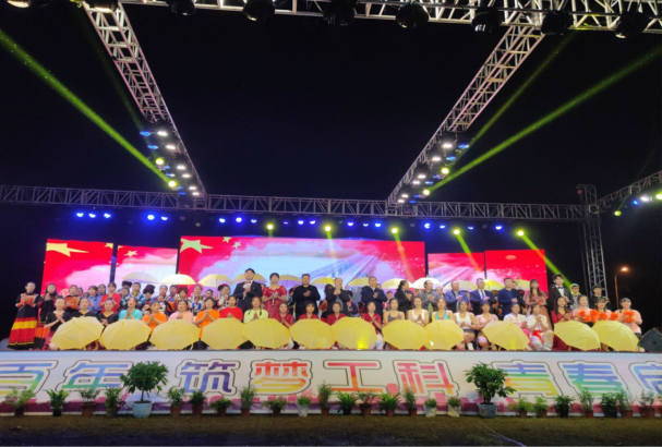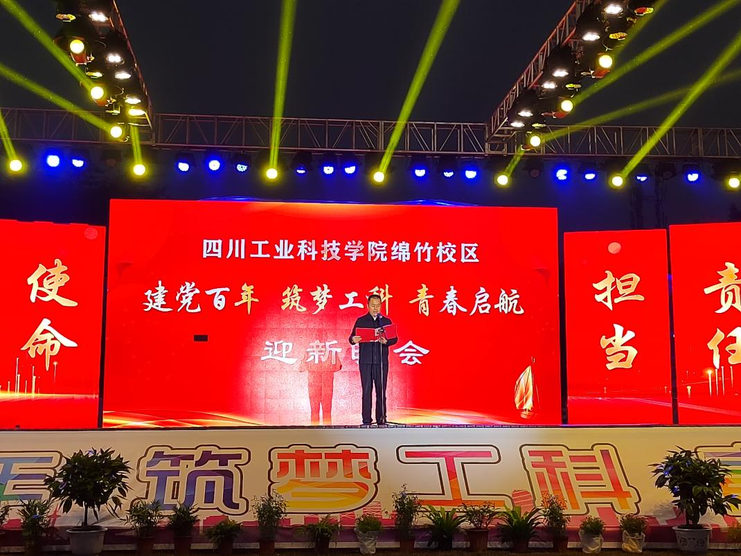 1025日,由四川工业科技学院体育学院、中艺中专、城建校联办的“建党百年,筑梦工科,青春启航”迎新晚会在足球场举行。学校党委书记张继华、校党委副书记、纪委书记倪霞、学工部部长何忠国等出席晚会,校企合作代表、中艺、城建校领导、在绵竹校区的全体老师们和同学们参加晚会。