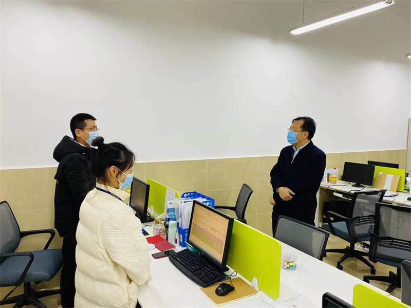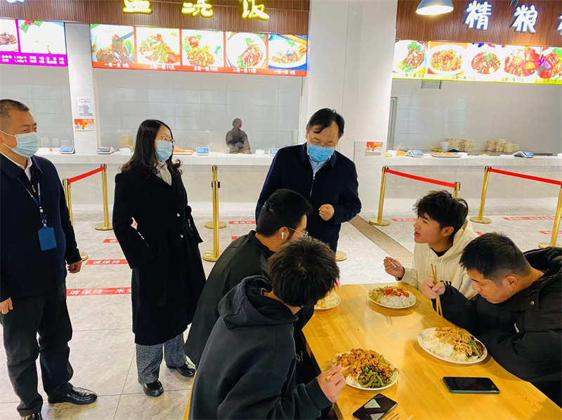 张澜涛一行先后深入学校龑江学村教学楼、学生食堂、宿舍以及校医务室等防疫重点点位进行了实地查看,并详细询问了疫情防控期间学校封闭式管理、防疫药品物资储备、临时隔离点、教育教学安排等方面的情况,并查阅了学校疫情防控工作台账和相关资料。张澜涛副厅长对我校落实疫情防控各项举措给予了肯定。他指出,当前我省教育系统疫情防控形势严峻复杂,学校一是要高度重视,迅速进入应急状态,认真落实疫情防控责任。二是要严格抓好校门、食堂、图书馆、宿舍、教室和快递取放点等关键环节和领域的疫情防控。三是要精确摸排师生的健康状况和行程轨迹,本着“谁的人、谁负责,谁失控、追谁责,谁瞒报、追谁责”的原则建立责任追究机制。四是要做好隔离人员的服务和关怀,确保隔离人员心态良好,安心隔离,真正把疫情防控工作做实做细。