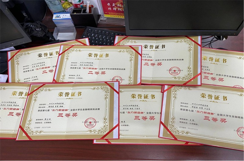学院学子在刘云、韩未斌、郑建老师的指导下荣获第七届全国大学生金融精英挑战赛二等奖3项,三等奖5项,优秀奖19项;在韩未斌、余进老师的指导下荣获第一届四川省大学生区块链技术应用创新大赛三等奖3项。