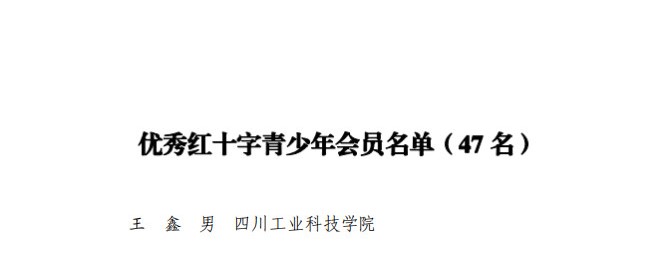 近日,四川省红十字会下发了表扬全省2021年度学校红十字会先进集体、先进工作者和优秀红十字青少年会员的通知,学校红十字会被评为先进集体,学校红十字会杨春老师被评为先进工作者,王鑫同学被评为优秀红十字青少年会员。