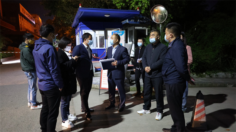 温剑锋一行实地检查了学校门岗执行疫情防控相关规定的情况,并随机抽查了部分离德返校师生的健康码、行程码、核酸检测阴性报告等。