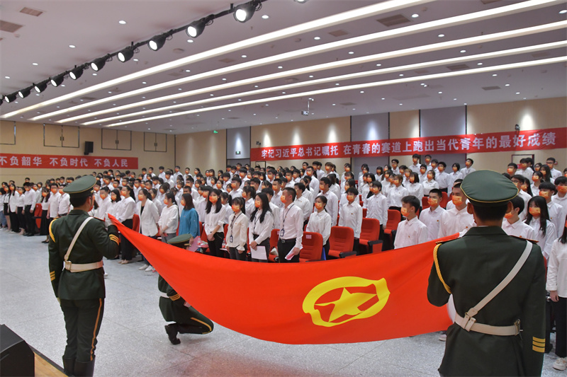 大会还进行了新团员入团仪式。由老团员为新团员佩戴团徽并表示祝贺,全体团员肃立并面向团旗庄严宣誓,自愿加入中国共青团。随后,倪霞宣读表彰决定,相关领导为受表彰的先进集体和个人颁奖。