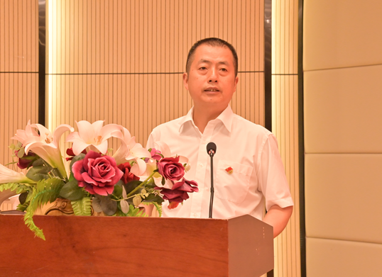 优秀党务工作者代表直属机关第四支部书记何林贵在大会上发言
