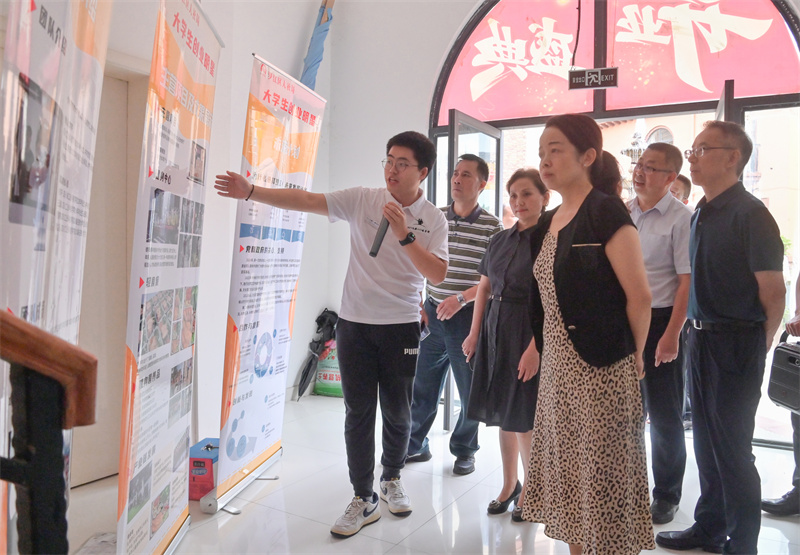 周新蓉一行实地考察了学校大学生创业智慧服务空间、大学生创新创业示范街和毕业学生创业项目“921&瘦GO”健身馆,了解了学校的办学历程、学科专业设置等,听取了学校就业创业工作、大学生创业智慧服务空间建设和使用情况介绍。