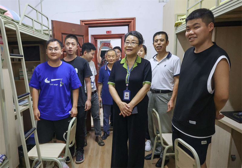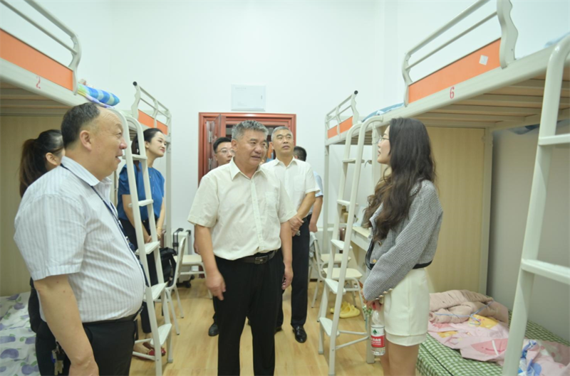 执行校长刘昌明走进教育学院的寝室与新生亲切交谈,仔细询问了们的家庭情况、饮食习惯、住宿安排以及对未来的规划等,希望他们尽早适应大学生活,坚定理想信念,勤奋学习,不断加强自身的道德修养,练就扎实的本领,不负青春、不负韶华、不负时代。
