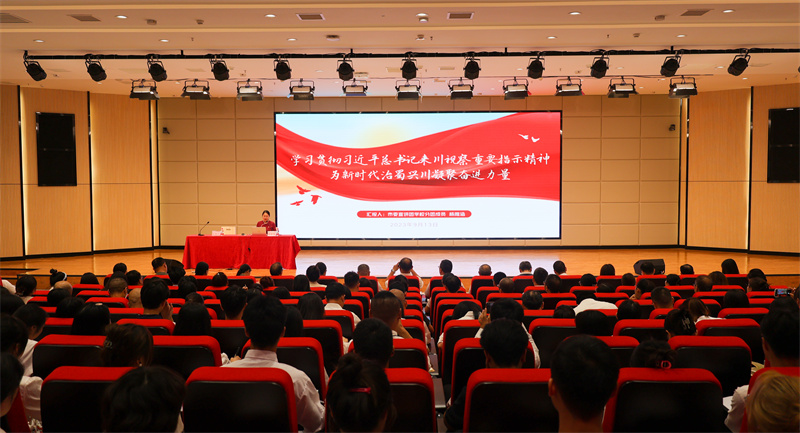 9月13日,习近平总书记来川视察重要指示精神德阳市委宣讲团高校分团成员、四川工程职业技术学院党委委员、党委宣传部副部长杨雅涵教授来校向广大师生宣讲习近平总书记来川视察重要指示精神。学校党员领导干部、思政课教师、学生代表以及罗江中学、罗江潺亭七一中学的教师代表共计330余人参加报告会。