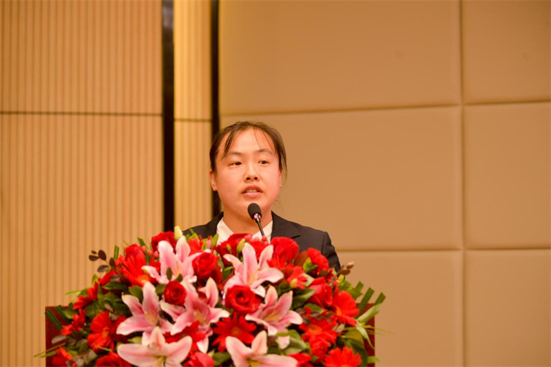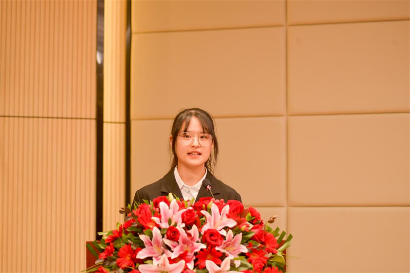 电子信息与计算机工程学院安欣同学代表全体学员表态。她讲到,自己将在今后的学习和工作中起带头作用,努力实践、勇于创新,在党组织的领导下,为建设团结向上、文明健康的校园而贡献自己的智慧与力量,以饱满的热情、高昂的斗志、实际的行动,积极向党组织靠拢,争取早日加入中国共产党。