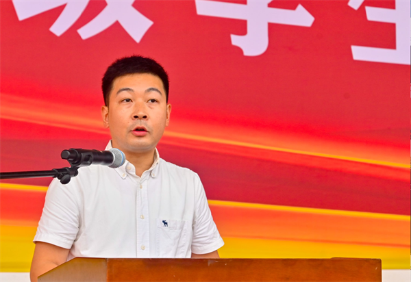 智能制造与车辆工程学院副院长袁新代表全体教师发言,他结合自己十五年的从教生涯向同学分享了在大学中如何把握自我,磨砺自我,成就自我。他表示,将继续保持一颗热爱的心,爱学生、爱学校、爱教育这项事业,坚持不懈立德树人,用心育人。本着“对每一位学生负责”的宗旨,秉持学校“敬业拙诚 求是善导”的教风,以敬业务实的工作精神开拓进取,为学校建设特色鲜明、区域一流的应用型本科大学而奋斗。