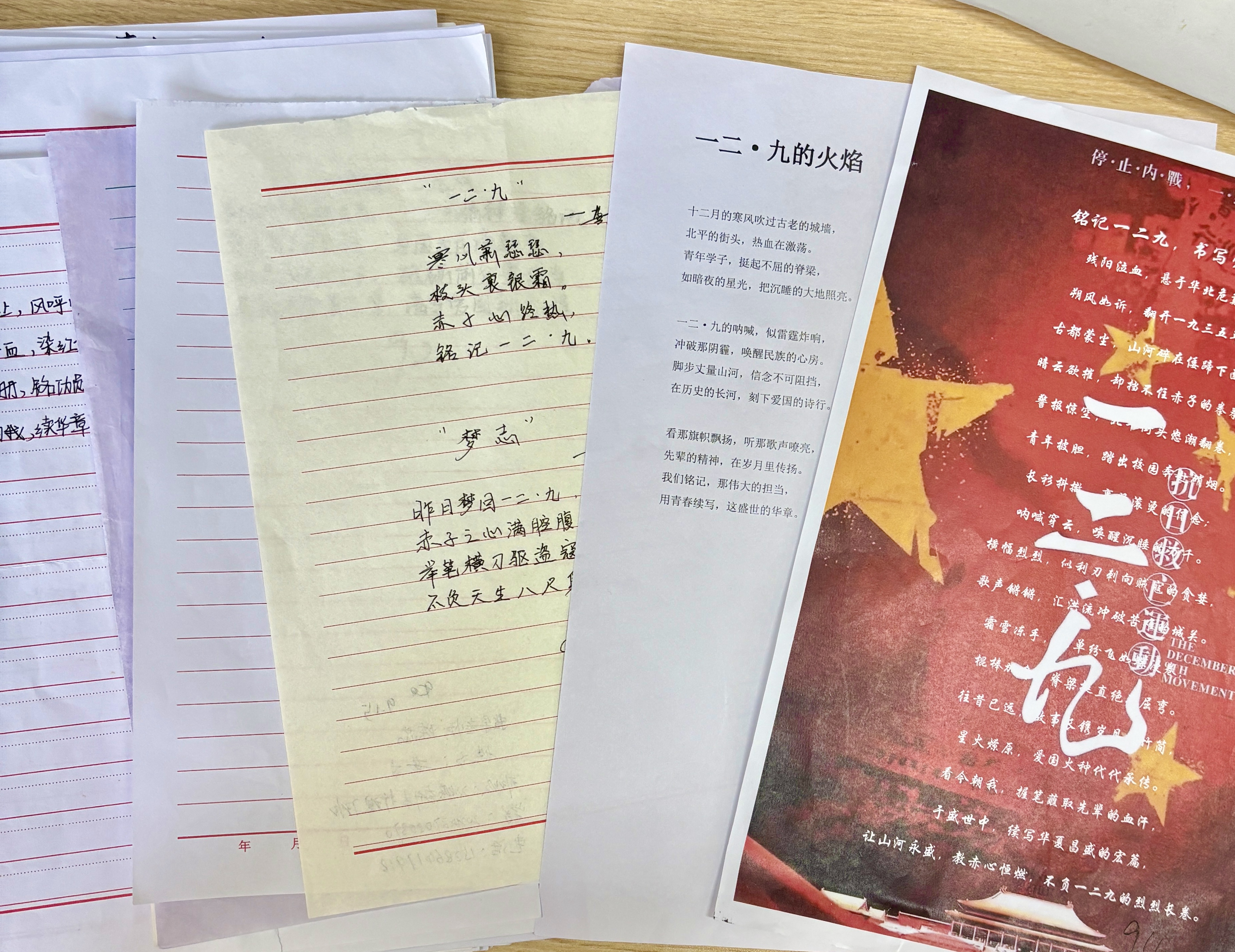 12月9日,“铭记一二·九,书写爱国情”红色诗歌征集活动顺利举办。同学们纷纷用文字抒发对祖国的深厚热爱和对历史的崇高敬意。在众多投稿中,《星火燃山河,明火耀时代》、《一二·九:青年的火焰》等优秀作品脱颖而出,它们以真挚的情感、精妙优美的词藻勾勒出革命先烈的英勇事迹,以及当代青年勇担使命的决心。