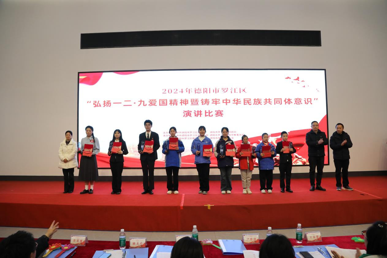 12月9日,学校选派李蕊、唐灏宸同学参加德阳市罗江区“弘扬一二·九爱国精神暨铸牢中华民族共同体意识”演讲比赛,分别斩获二等奖与三等奖。比赛中,两位同学展现出了扎实的演讲功底和良好的精神风貌,以深沉情感阐述爱国精神传承,借校园实例展现民族团结风貌,获得评委与在场观众认可,展示了学校学生积极向上、爱国奋进的精神风貌。