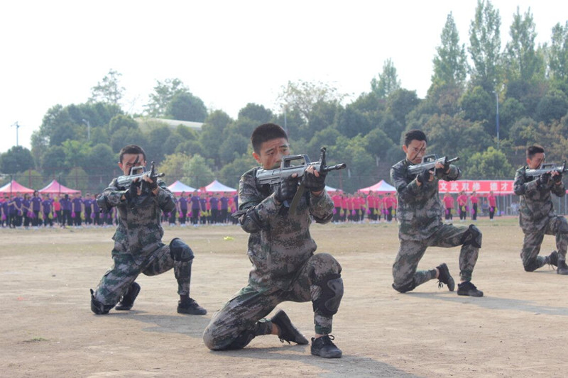 歌声嘹亮,彩旗飞扬,一个个精彩的节目轮番亮相:体育学院的搏击操、棍术表演、长柄大刀、舞狮等民族传统表演;四川省百佳魅力社团银杉特训队的军体拳表演;学校教官队的反恐防暴手语表演。宏大的场面,强劲的视觉冲击力,赢得现场观众的阵阵喝彩。
