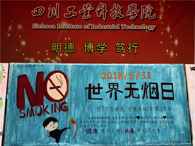 5月31日,由学生处主办的“世界无烟日”活动在绵竹校区举行,全校200余名志愿者参加了本次活动。此次活动的开展倡导学生养成良好的生活习惯,为我们的学习和生活创造一个良好的无烟环境。