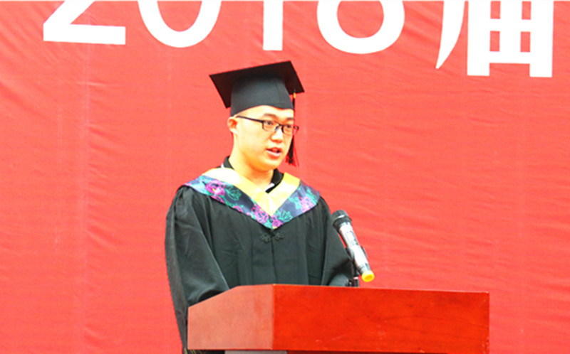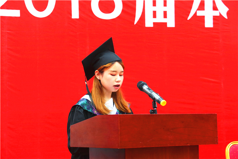 教师代表江晓燕动情的回味了同学们大学四年的校园生活:“在四年里,你们一定抱怨过考试为什么总是那么难,你们也欣慰学校给了你成长的平台;你们总是郁闷暗恋你的那个他为什么总是不表白,你们也惊喜生活不仅有完满的现在,还有诗和远方。在蠢蠢欲动的年纪里有那么一丝丝的躁动却总能不忘初心,砥砺前行!你们用你们的方式演绎了属于你们这一代青春年华的经典。”她向同学们寄语道:要做一个善良、懂感恩的人,勤于进取、阳光自信,从容应对未来人生路上的波澜狂潮,活出自己的强大,并勉励同学们,要以书为伴,终身学习!