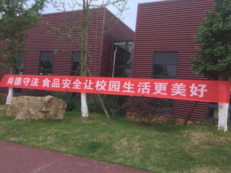 在校内悬挂“尚德守法,食品安全让校园生活更美好”等内容的横幅