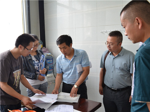 9月2日德阳教育局李怀金书记和罗江县教育局杨莉娟副局长等人,在我院副院长黃斯欣、院办主任孙堃伦、后勤处副处长曾德斌、食堂经理汪政华及罗江县教育局相关工作人员等人的陪同下,对我院食堂卫生安全工作进行检查。