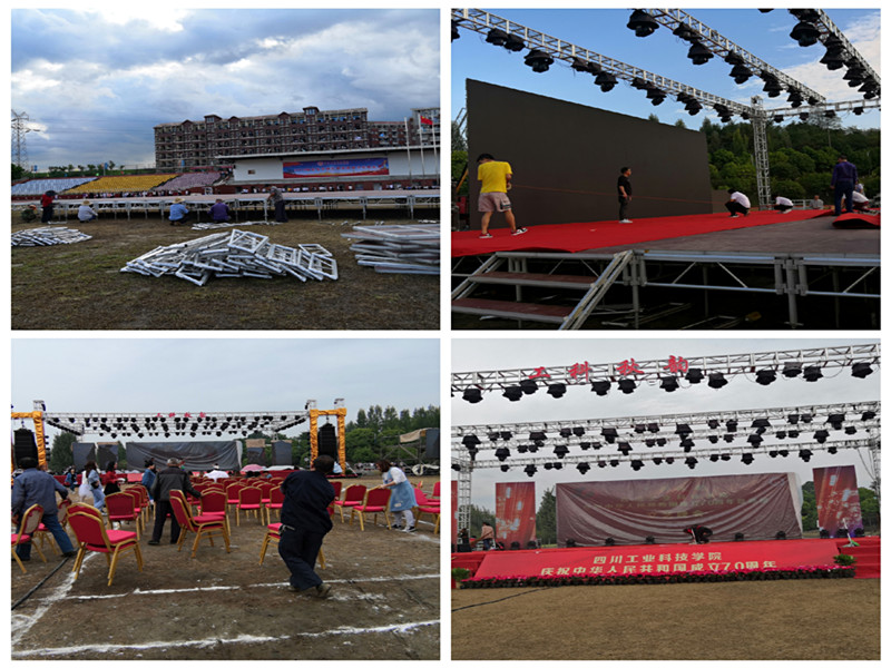 兵马未动,粮草先行。为充分保证文艺晚会顺利举行,后勤管理处全力做好晚会会场布置工作。后勤管理处在舞台搭建、水电保障、更衣室布置、校园保洁及美化等方面,制定了完整详细的工作方案,进行了明确的分工,确保会场布置流程零差错,做到全面保障、优质服务。整个后勤保障工作中,共铺设地毯、搭建舞台180余平方、搬运桌椅200余张、摆放鲜花300余盆。此次会场布置工作展现了后勤人“笃行、高效、主动、热情”的服务理念,充分践行了工匠精神,圆满地完成了庆祝中华人民共和国成立70周年暨迎新文艺晚会服务保障工作。