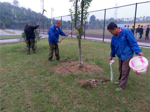 此次秋季所需施肥树木、盆景、球类、灌木等一万余株,其中桂花树、银杏树、香樟树、垂柳、柏杨等树木3500余株。为确保秋季施肥的质量,今年,后勤管理处要求分区域、分类别全面施肥,同时对施肥工作进行了进一步规范:要求环卫绿化科工作人员对种植的树木、乔木、盆景、球类等必须在树根周围开塘、打孔进行施肥;灌木、草坪采用抛洒的施肥方式。所施肥料总计三吨,主要有尿素、复合肥、硫酸钾果蔬肥及特殊树种专用肥等。