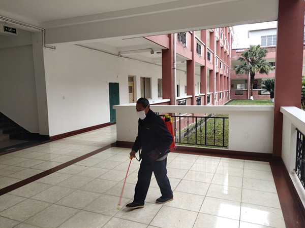 同时,春季开学前我处于2020年1月26日起每天进行环境消毒,提前对消毒工作人员进行针对性消毒知识培训,要求工作人员在作业时严格遵守消毒操作规程,做到合理用药,确保安全。在消毒过程中,专业工作人员操作规范,按比例配兑消毒液进行喷洒,进行全方位、地毯式消杀,不放过任何一处死角,做好食堂、学生公寓、图书馆、教学楼等重点区域以及卫生间、走廊、楼梯间、垃圾桶等师生接触较多的区域的消毒工作,做到消毒不留空白,消毒工作人员细致全面地进行消毒、通风,高标准、高质量完成消毒任务,为校园安全防控严把各种关口。