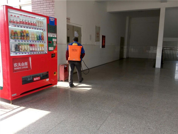 春季是季节性流行性传染病的高发时段。学校是人群集中的地方,也是病毒病菌极易传播的地方,为了防止病毒病菌的滋生、传播,对全校师生的身体健康造成伤害,学校后勤处工作人员依次对学校教学楼、办公室、图书馆、宿舍以及室外进行全面的药物喷洒消毒,主要针对楼道、门、室内地面、阳台、卫生间等几个卫生死角进行大面积消毒,确保了消毒质量和消毒效果。