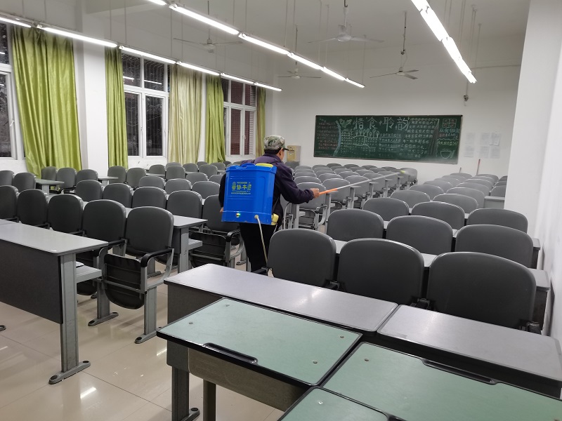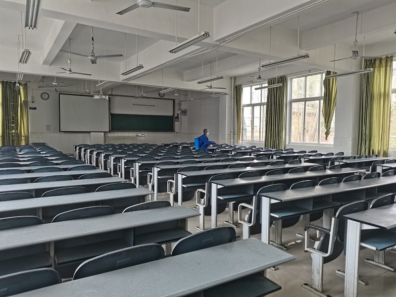 初心不变,使命在肩。疫情当下,清洁打扫完毕后,于3月26日开始对校园教学楼、体育馆、实训室、食堂等学生密集区域进行了全面、彻底的消毒灭菌工作。在消毒过程中严格遵守卫生消杀标准规范操作,对教室、洗手池、卫生间、等公共区域进行消毒消杀,全面切断校园疫情传播源,为考生创造一个安全、卫生的考试环境,为考生健康保驾护航。