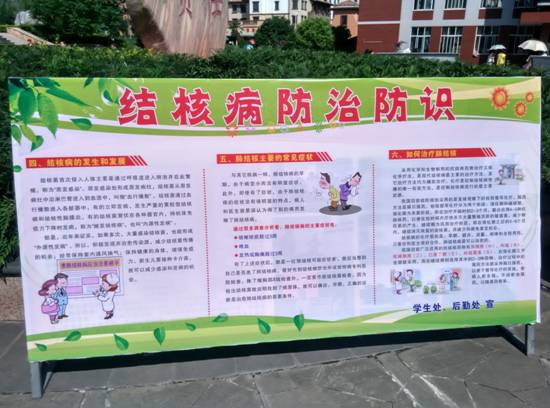 随着全球性结核病疫情的加剧,我国、我省包括我市结核病发病率也出现了回升的趋势;为全面推进结核病防治工作进程,提高全校师生对结核病防治知识的知晓率,我校开展了一系列结核病知识的宣传活动,使结核病防治知识进校、进班,极大地提高了我校师生的防治水平。