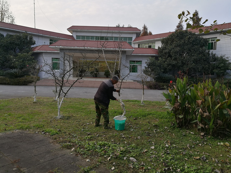 这次刷白工作主要针对校内外各条主次干道的人行道绿化带、分车带的行道树以及各绿地乔、灌木进行统一刷白。刷白,是在树木上面刷一层氢氧化钙合剂混合物,一般离地面1.2米。刷白工作具有双重作用,一是防止因冬季昼夜温差过大而造成树皮冻裂。通过给树体刷白,可反射掉40-70%的阳光,降低树木自身的温度,从而减少树干昼夜温差,防止“日灼”现象的出现,避免冻害的发生,起到防寒保暖作用。二是预防病虫害滋生以及降低来年发病率。到了冬季,树上的多种害虫便顺着树干爬到地面寻找适合的环境以躲避严寒,而被刷白的那段树干的树皮本身,正是藏匿害虫、虫卵和病原体的重要场所。因此,刷白是防止害虫在来年春暖花开时,再次危害和感染树木的有效手段。除此之外,由于树木(尤其是行道树)树体刷白高度基本一致,还能起到美化校容环境,提高道路景观效果的作用。