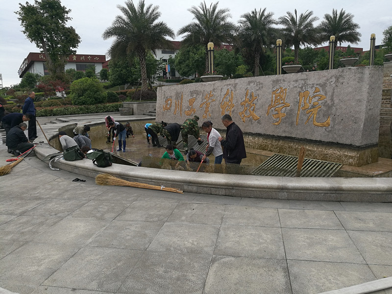 为迎接老挝、日本等国家来我校参与合作办学,让来访宾客对我校的印象更加深刻,提升我校形象,美化我校环境,更好地促进各方合作办学。后勤管理处于4月13日对校大门口喷泉池进行了彻底清洗,同时对喷泉设施设备进行了全面检修。