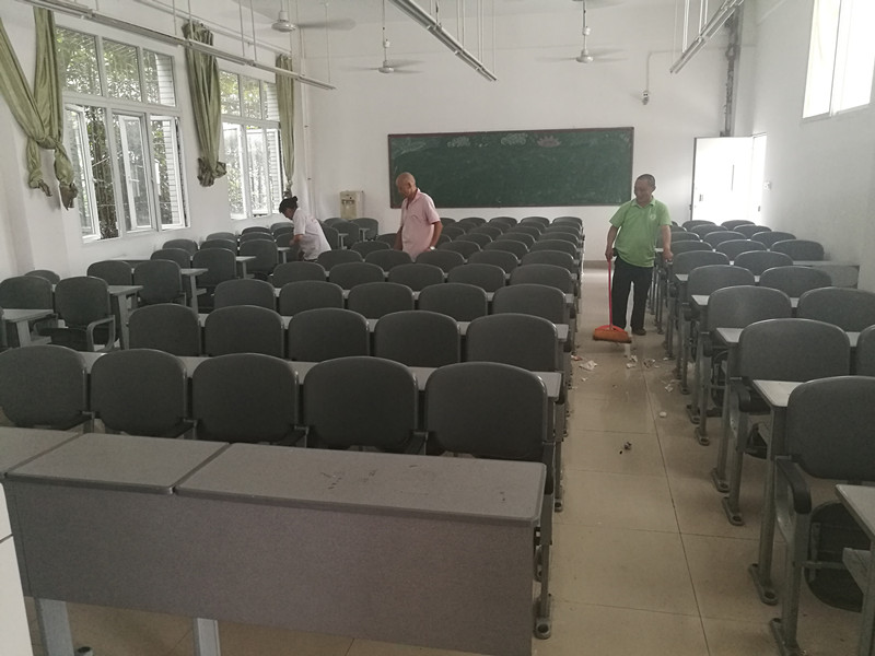 2018年暑假期间,后勤管理处坚持为“为教学、师生服务”的原则,进行精细化、规范化管理。按照学校假期工作部署,结合部门实际,坚持做好假期水电设施设备维护和检修、绿化环卫、桌椅门窗检修、食堂及食品管理等各项工作,为开学正常运转做好服务。领导带领员工坚守岗位,不畏高温酷暑、不畏狂风暴雨,克服困难,团结协作,全力做好各项维护、维修、改造工作,为开学工作的正常运转奠定基础。