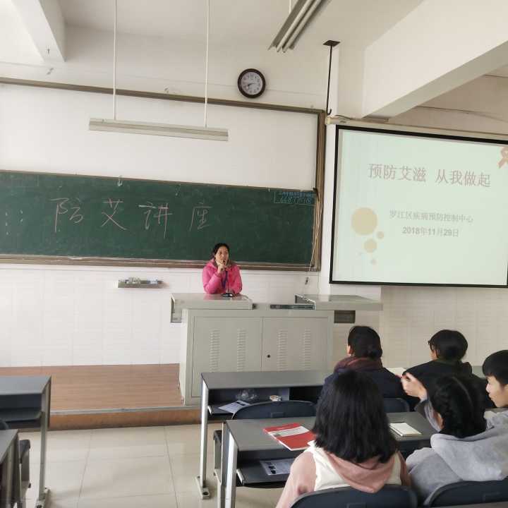 2018年11月29日下午14:00我校邀请罗江区疾病预防控制中心邓老师,在毓秀楼306教室举办了“预防艾滋,从我做起”预防艾滋病知识专题师生讲座。老师将临床病例与PPT相结合的方式进行全面的讲解,使学生们更深入地了解了什么是艾滋病,艾滋病的传播渠道,艾滋病的广泛性以及艾滋病的预防等重要的知识。艾滋病是由人类免疫缺陷病毒引起的人体免疫预防系统的疾病。从讲座中我们了解到艾滋病的医学全称为“获得性免疫缺陷综合征(英文缩写ADIS)”是由艾滋病病毒引起的一种严重传染病。艾滋病病毒入侵人体后破坏人体的免疫系统,使人体发生多种难以治愈的感染和肿瘤,最终导致死亡。