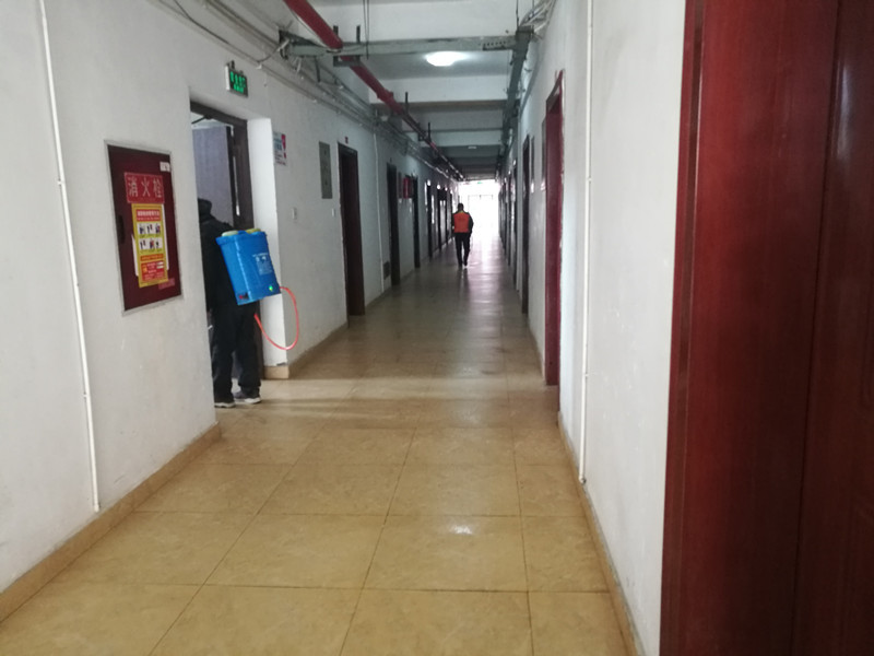 后勤管理处进一步强化、细化工作措施,及时组织工作人员,于2019年2月21日在全校范围内清理卫生死角,消毒卫生间、教学楼、学生公寓等公共场所,并对垃圾房、垃圾桶等重点部位进行了药物喷洒,防止春季传染病在学校发生和蔓延。通过对消杀人员进行集中业务知识培训,要求消杀人员在作业时严格遵守消杀操作规程,做到合理用药,确保安全。在消毒和消杀过程中,专业工作人员操作规范,按比例配兑消毒液进行喷洒,进行全方位、地毯式消杀,不放过任何一处死角,确保消毒和消杀工作取得圆满成功。