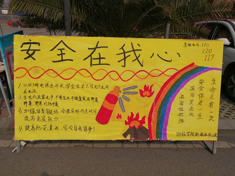 根据《2019年法制安全教育月活动方案》的相关要求,学校宣传部、学工部、安全保卫处、各二级学院在法制安全教育月活动启动仪式后积极行动起来,以“携手创建平安校园,齐心营造迎评环境”为主题,利用展板、横幅、主题班会等多种形式营造出浓厚的安全宣传氛围。