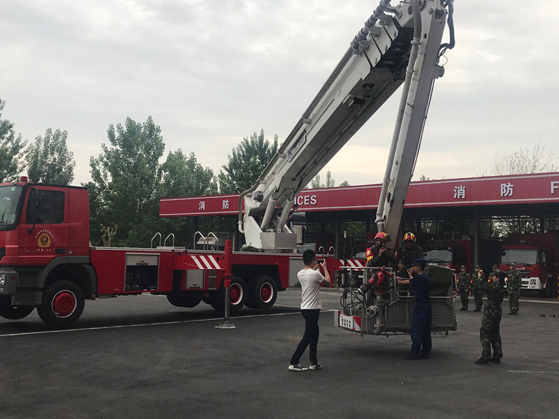 在德阳市消防支队特勤中队,消防队员首先为我们演示了消防服的穿戴及它的作用,详细介绍消防车辆的构造。接着消防官兵讲解了水袋的相关用法及常识,还进行了小队比赛。最后消防队员带领志愿者中心成员轮流登上了登高平台消防车,体验了一次消防高空作业小组。