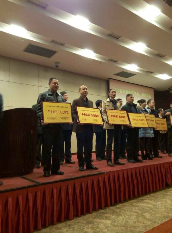 会后,我校被评为四川省高教保卫学会、消防协会2015年度“平安校园”建设先进单位;李逢春、周忠勇被评为四川省高校“平安校园”保卫干部先进个人;李忠建、甘绍杰、于连伟、荣东被评为四川省高校“平安校园”保安先进个人;李玉甫、詹会明、陈奎被评为四川省高校“平安校园”学生先进个人。