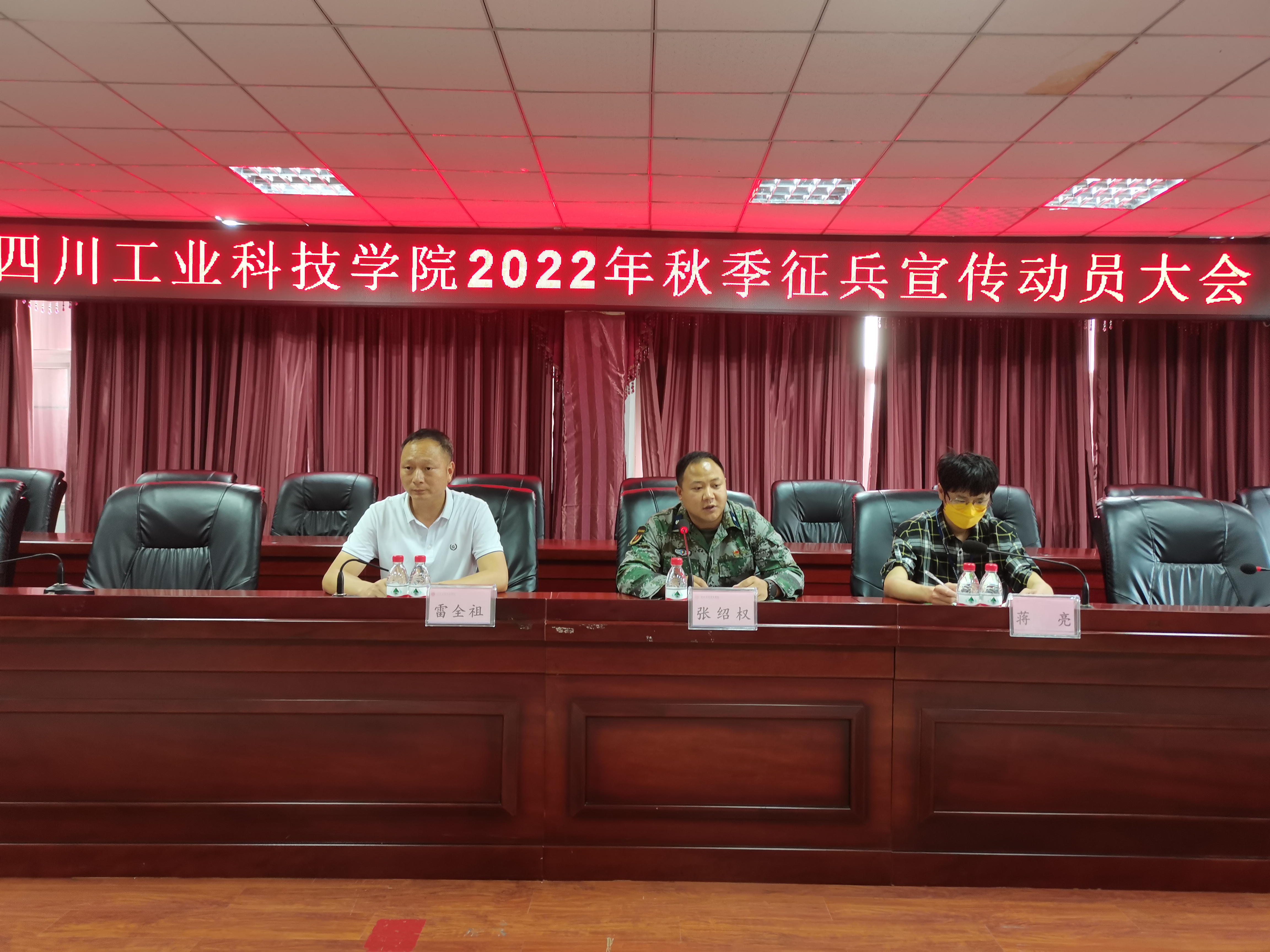 5月31日下午,学校组织召开2022年秋季征兵宣传动员大会。罗江区人武部军事科科长张绍权、各二级学院党总支(副)书记及全体专兼职辅导员参加会议,安全保卫处处长雷全祖主持会议。