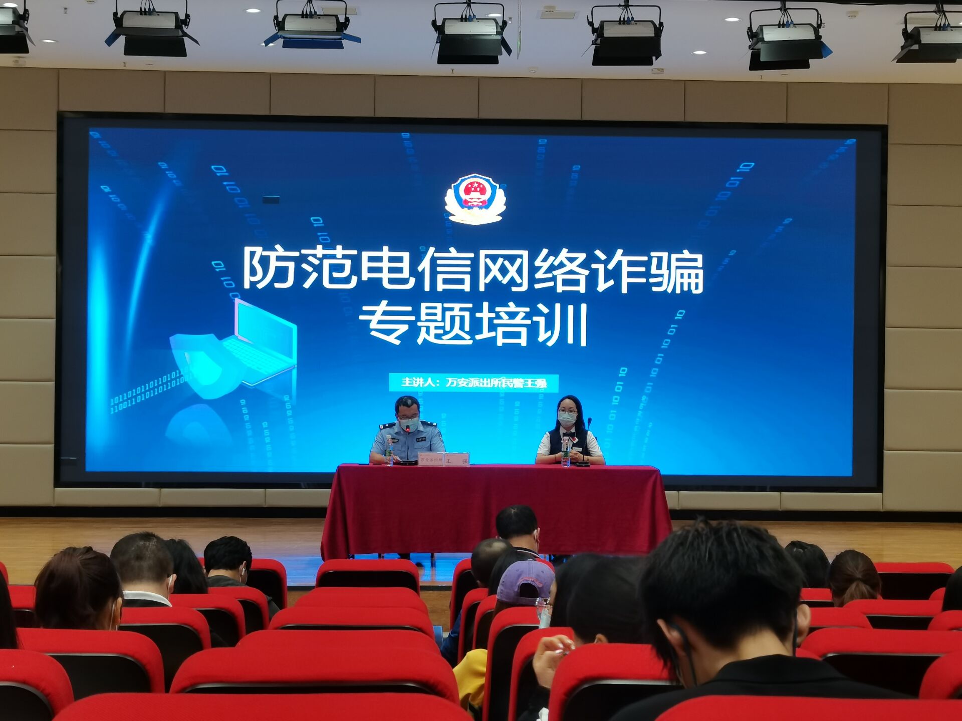 为有效防范电信网络新型违法犯罪在校园内外的发生,切实增强广大师生防诈反骗意识,保障师生财产安全。9月16日上午,罗江区公安分局万安派出所民警王强和中国银行罗江支行行长周琼芳走进我校,通过开展讲座、提供现场咨询、发放宣传资料等方式开展电信网络诈骗知识培训。安全保卫处处长雷全祖主持活动,各二级学院辅导员参加培训。