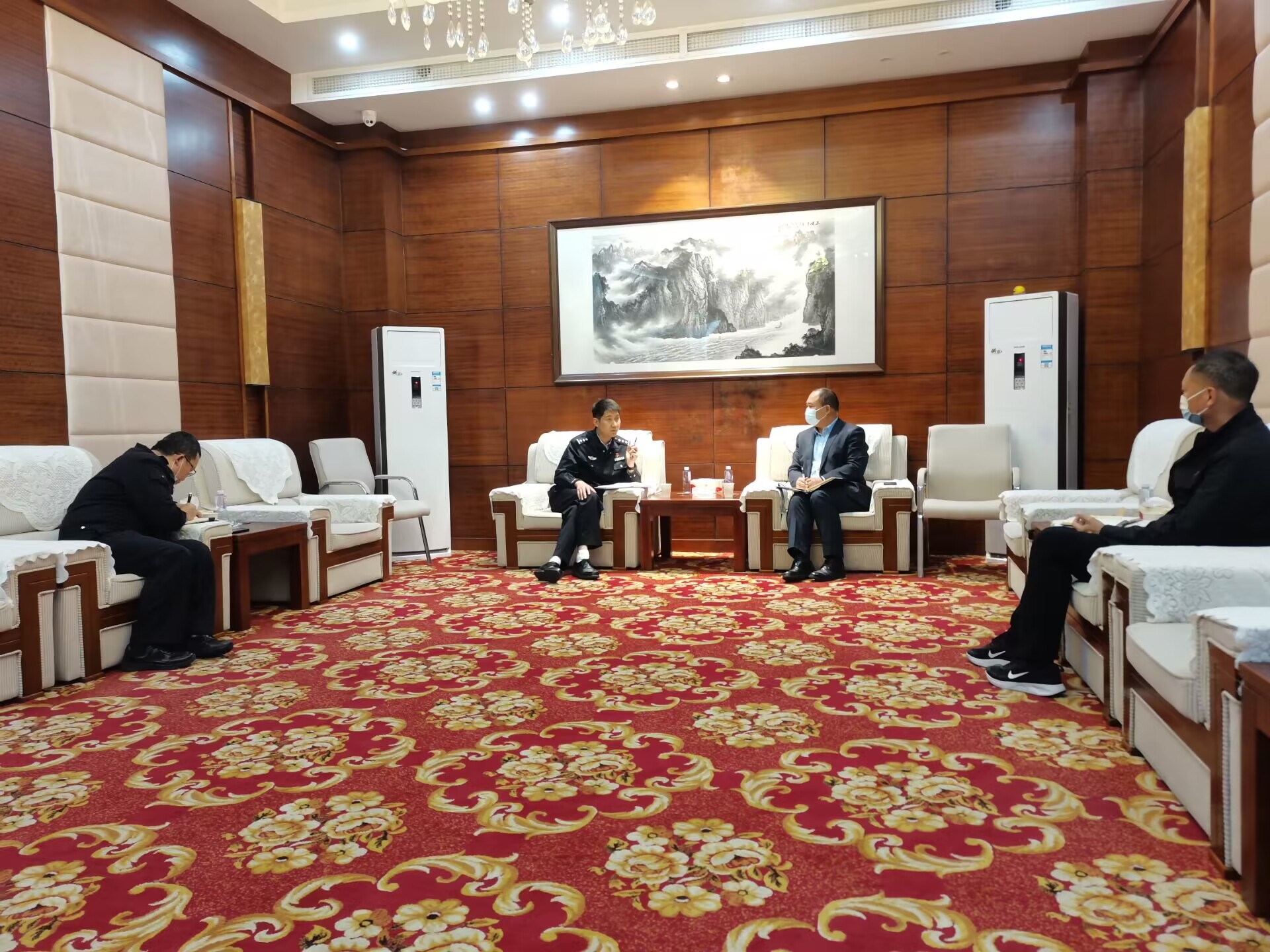 为深化毒品预防教育工作,提高全体师生的禁毒意识,德阳市罗江区公安分局刑警大队教导员李狂、驻校民警王强同我校党委副书记杨朋、安全保卫处处长雷全祖就此项工作进行探讨交流。